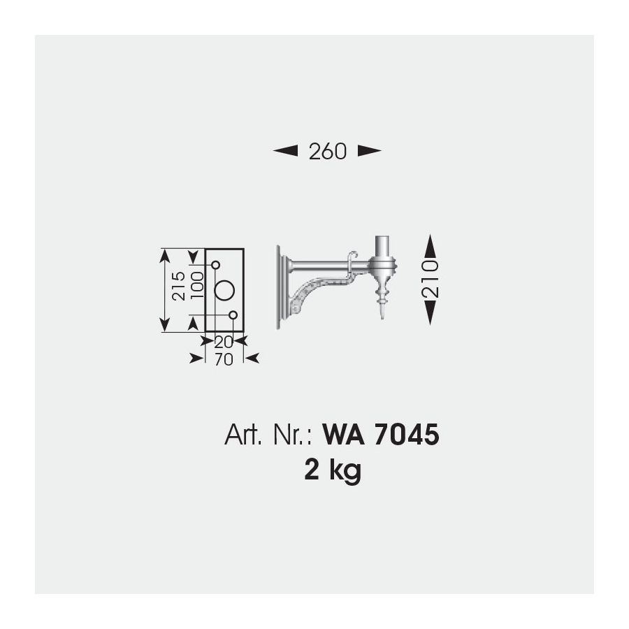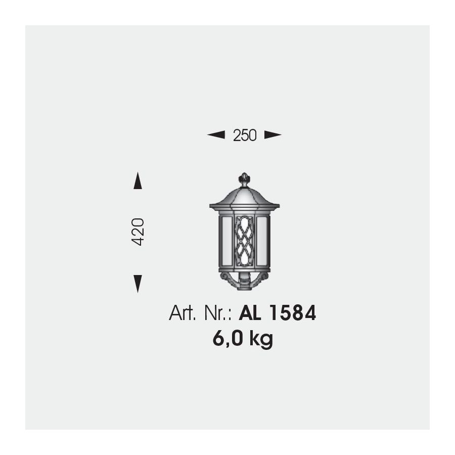 Den traditionella lyktan har ett vackert handgjort ramverk som blev dess främsta kännetecken. Vägglampan tillhör utomhussortimentet från det tyska märket Robers känt för sin passion att enbart tillverka handgjorda armaturer. Denna lampa är helt tillverkad av smidesjärn. Dess lilla rektangulära bakplatta är gjord i en lakonisk design då huvuddekorationen tillfaller armen och lampskärmen i den klassiska formen av engelska lyktor. Den är dekorerad med en nedre prydnadsknopp och täckt av ett fint utformat tak.