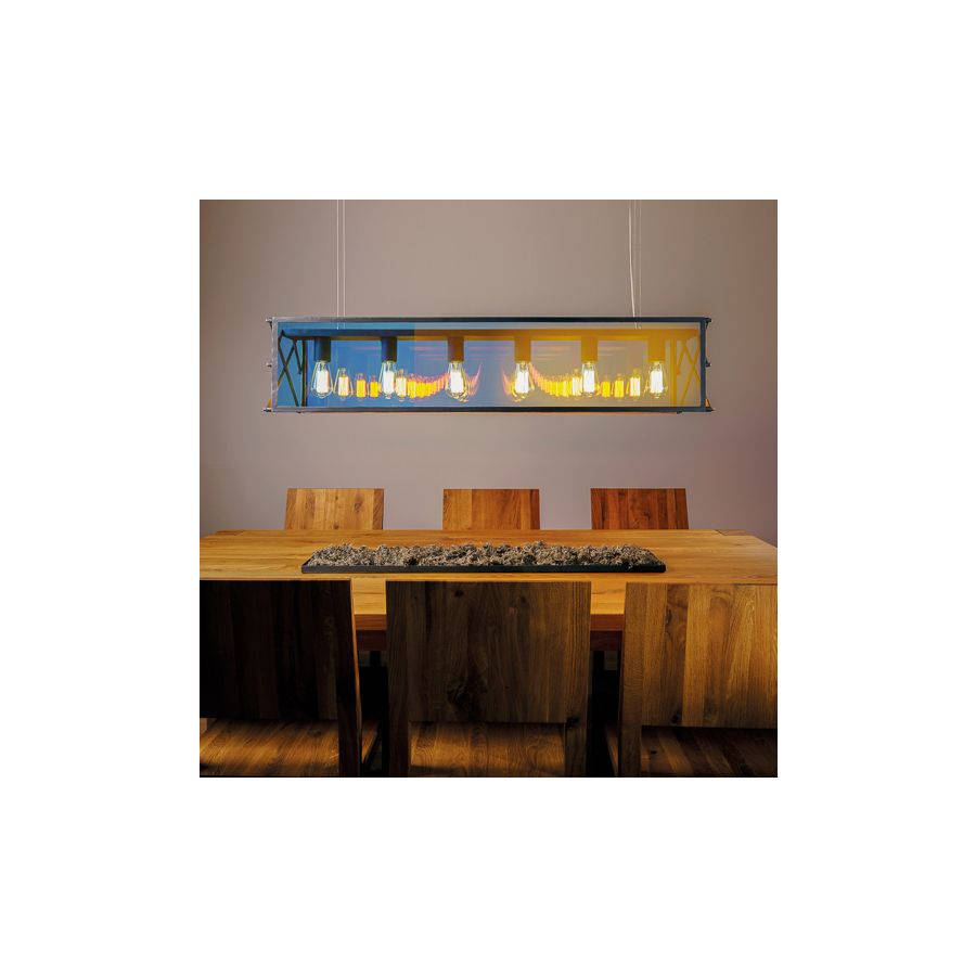 Med sex E27-ljuskällor ger armaturen tillräcklig ljusstyrka för större ytor samtidigt som den bibehåller en mjuk och strukturerad ljuseffekt. Dess linjära geometri stödjer både moderna arkitekturkoncept och klassiska inredningskompositioner.