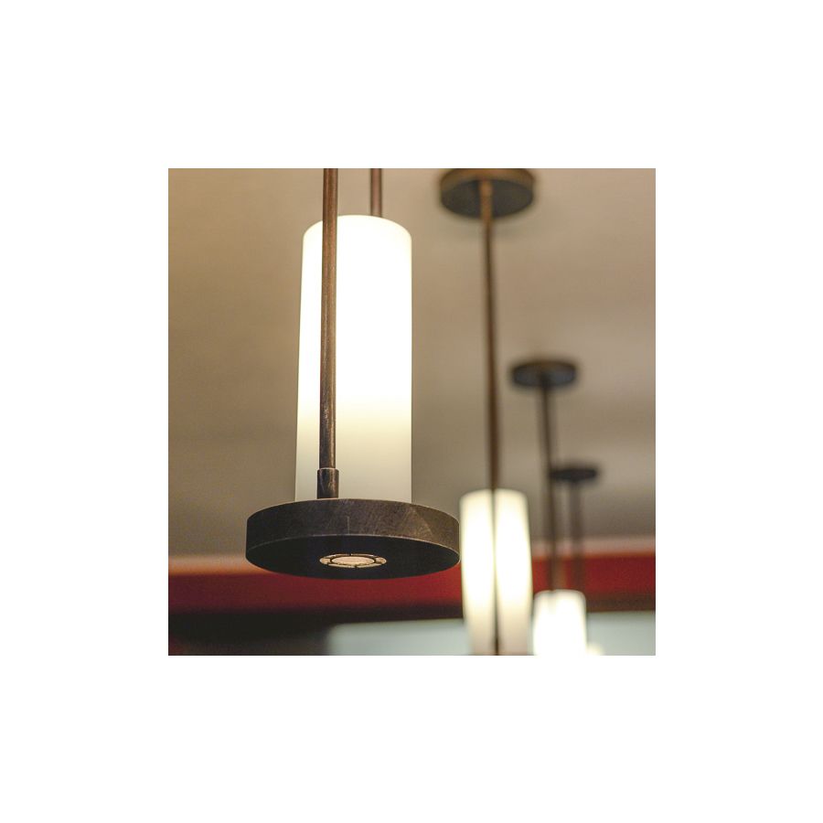 Denna pendellampa är utformad som ett vertikalt ljuselement, idealisk för att skapa fokuserad belysning och visuella accenter i inomhusmiljöer. Dess proportioner gör den särskilt lämplig för rum med högre takhöjd, trapphus eller områden där en definierad ljuspunkt krävs.