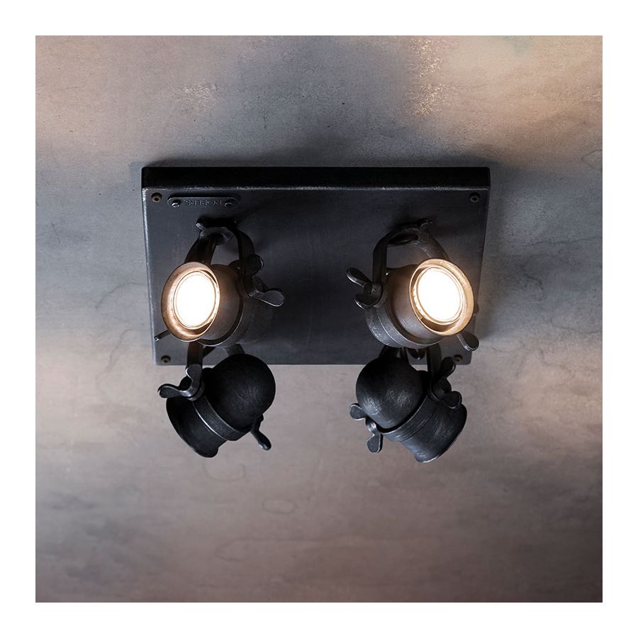 Utrustad med fyra GU10-ljuskällor levererar strålkastaren klart definierade och riktade ljusstrålar. Varje lampa kan riktas individuellt, vilket möjliggör exakt framhävning av väggar, möbler eller arkitektoniska detaljer.