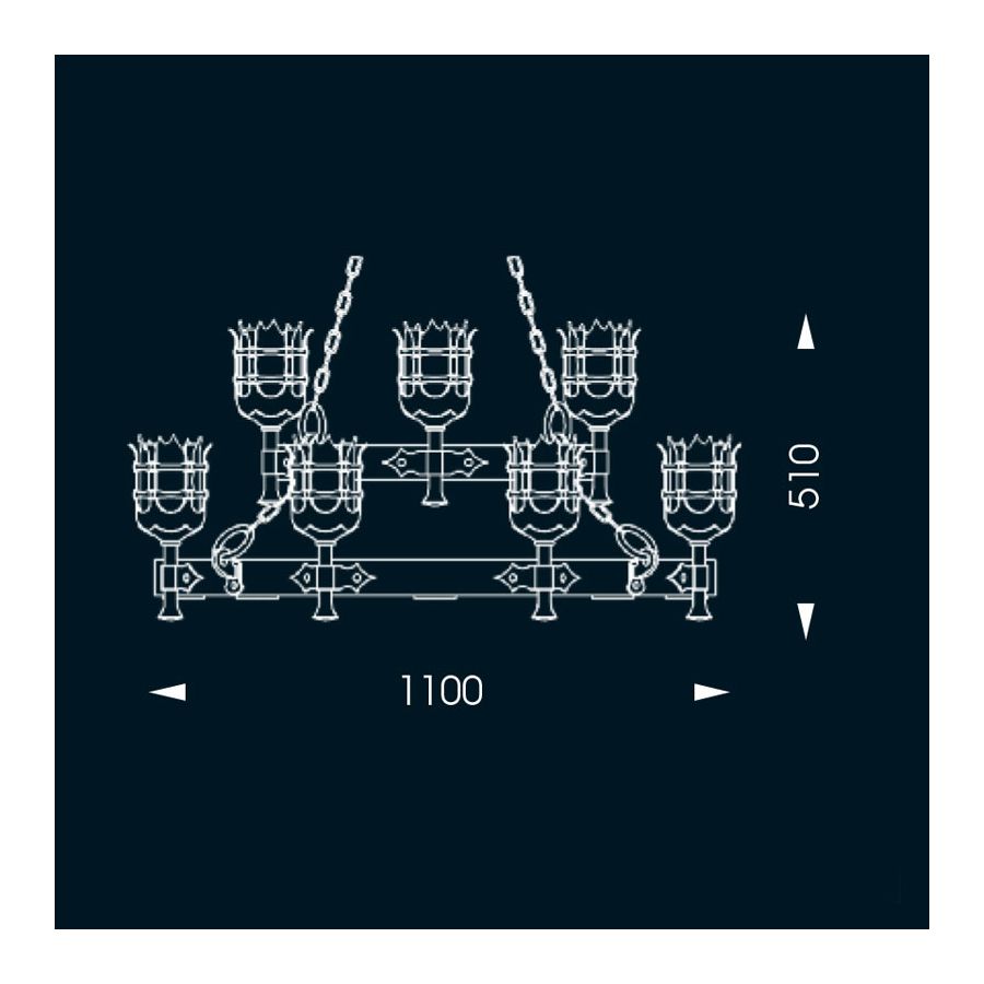 Denna pendellampa är skapad av Robers för att imponera och bli ett blickfång i rummet. Den tillhör kollektionen “Indoor 8” vilket innebär att huvudmaterialet är järn, målat för hand i 10 utföranden. Pendellampan har en stor storlek och två typer av glödlampor för att belysa ditt utrymme. Glödlamporna är placerade i en lampskärm av frostat glas med фт bärnstenstonad finish. 11 glödlampor runt basringen med 1 glödlampa i mitten och 4 downlights. Varje lampskärm är dekorerad med metallelement och fästs i basen med ett rör. Kedjorna håller lampan jämnt över hela diametern och förbinder den med den slutliga takrosetten.