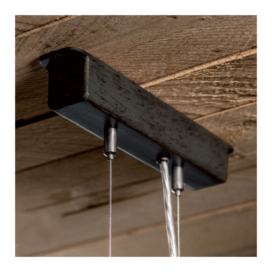 Denna lyxiga taklampa från kollektionen ”Indoor 2” är tillverkad på ett traditionellt sätt för märket Robers (Tyskland). Basen, kedjan och repen är gjorda av stål, helt handgjorda. Lampkuporna har olika storlekar och är tillverkade för hand av munblåst glas med opal matt yta. Det innebär att produkten är unik och att varje lampa har en något annorlunda form. Denna taklampa är en kraftfull ljuskälla tack vare 8 lampor och 2 downlights. Den rektangulära platta basen hålls upp av repen som förbinder den med takrosetten och sedan taket. Replängden är standard om det inte finns särskilda krav från kunden. Välj en av 10 ytbehandlingar för basen. Varje ytbehandling är målad för hand, så den kanske inte överensstämmer med fotot till 100%.