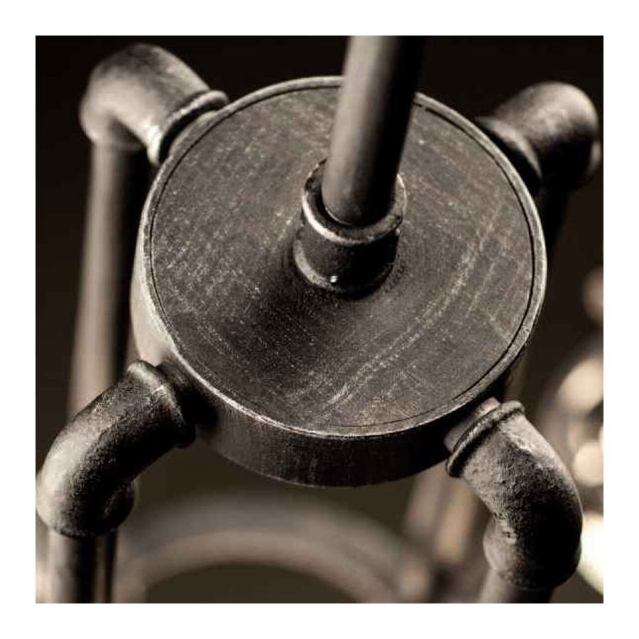 Hänglampa från kollektionen “Industrial 9” imponerar med sin design och uppmärksamhet på varje liten detalj. Den är monterad för hand av smederna på Robers (Tyskland) i deras fabrik. Denna tillverkare är ett sällsynt exempel på respekt för traditioner och, vad som är viktigast, som har hela tillverkningskedjan på ett och samma ställe. Resultatet blir snabbt och alltid av hög kvalitet. Denna hänglampa, liksom hela kollektionen, är gjord av hårt stål. Den har både en utsmyckad och stram design uttryckt i de exponerade glödlamporna och metalldekorationerna, vilket är ovanligt för den industriella/urbana stilen. Tack vare denna lösning ser den fantastisk ut i alla typer av inredningar, särskilt i stora rum där den blir huvudljuskällan. Komplettera denna lampa med bordslampor eller golvlampor i samma stil eller skapa en varmare känsla med hjälp av en ljusstake.