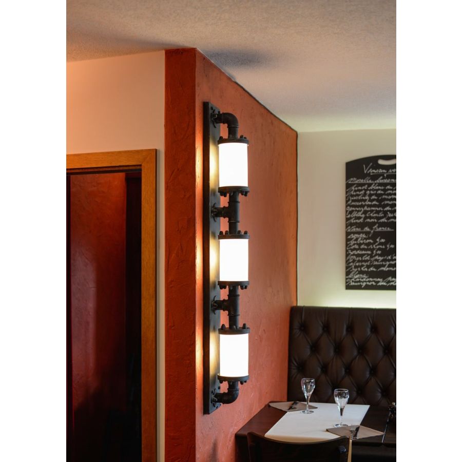 Formgivarna hos det tyska märket Robers uppfinner ständigt nya idéer för sina lampor. Den här gången har vägglampan fått en större storlek och flera dekorativa element som inte är typiska för märket. Den innehåller 3 cylindriska lampskärmar. Alla sammanlänkade i en rak linje skapar de ett enda ensemble. Traditionellt för Robers tillverkas lampan av hårt stål för hand. Varje föremål från “Indoor”-kollektionen är tillverkat av järn, koppar, galvaniserat stål eller gjutet aluminium. Det är därför det är så lätt att skapa en autentisk industriell eller urban inredning inom en och samma kollektion. Denna vägglampa ser stilfull och elegant ut tack vare det opalvita glaset med matt yta kompletterat av den ikoniska dekoren i metallnitar. Monterad och målad för hand.