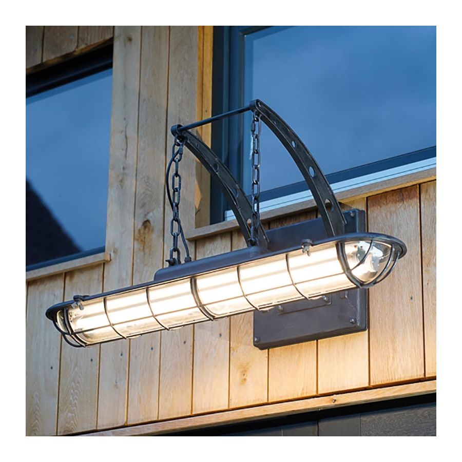 Utevägglampa är tillverkad av aluminium, varmförzinkat stål och klart glas. En design som verkar hämtad från början av industriseklet. Armaturerna i kategorin INDUSTRIAL speglar den estetiska charmen i industrikulturen. Kombinationen av tidlös design, massivt stål och autentiska detaljer ger denna serie dess unika karaktär.
