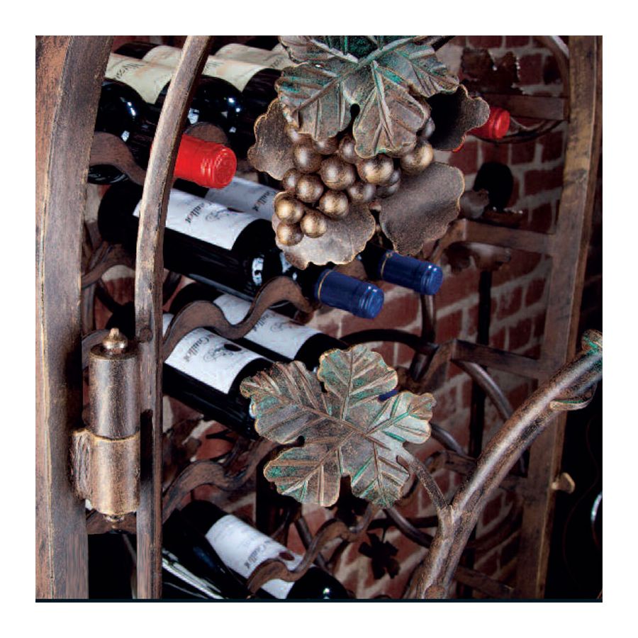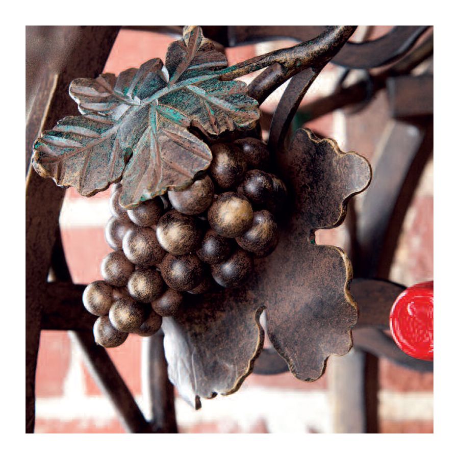 Denna vinbur från Robers är en unik möbel. Den visar smedernas höga skicklighet att arbeta med stål, bearbeta det på flera olika sätt och uppnå ett fantastiskt resultat. Vinburen är helt handgjord. De böjda dekorativa linjerna och druvklasen, omfamnad av de små bladen, visar den finess som märket besitter. En sådan sällsynt design kommer att bli ett statement i källaren eller i matsalen, inredd i industri- eller klassisk stil. Komplettera rummet med belysning och tillbehör från samma kollektion "Indoor" och du får ett stilfullt utrymme med själ.