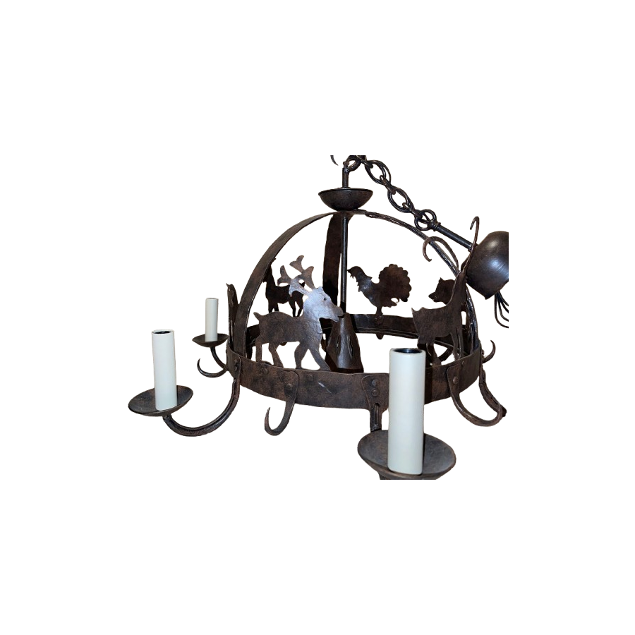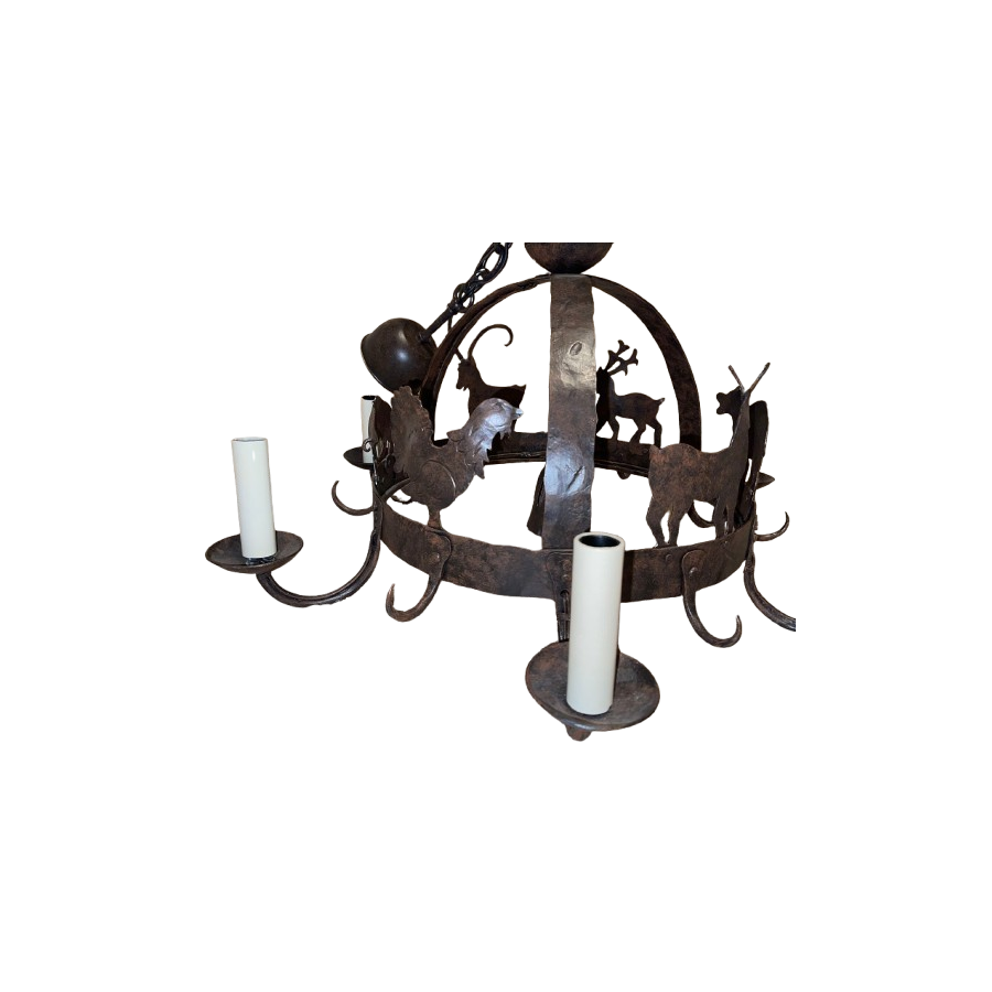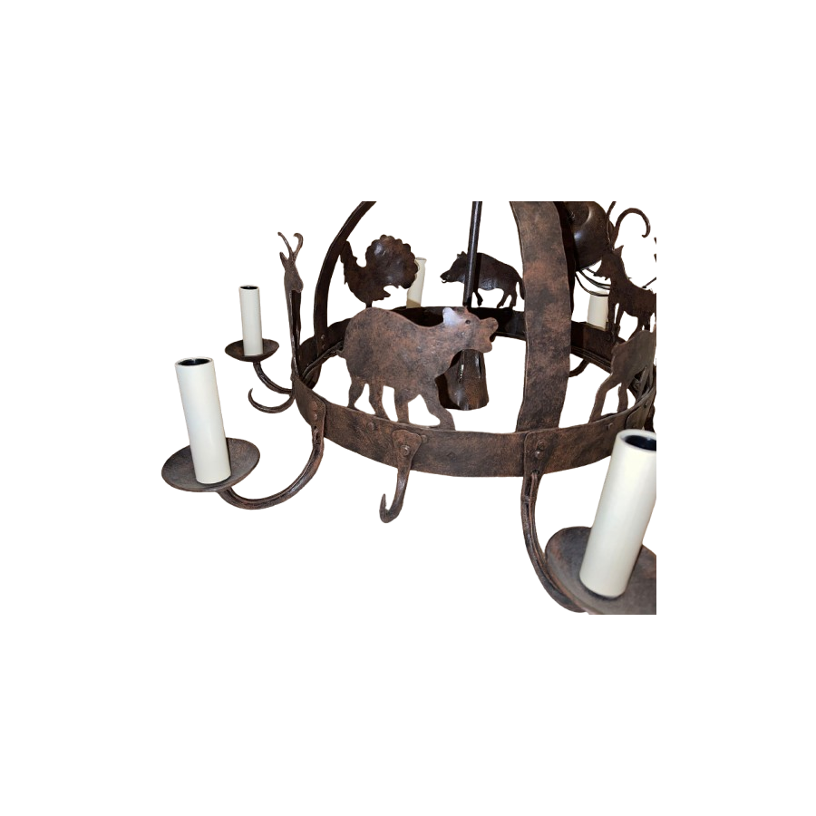Robers Leuchten / Ljuskrona med silhuetter av vilda djur / Rustic Wrought Iron