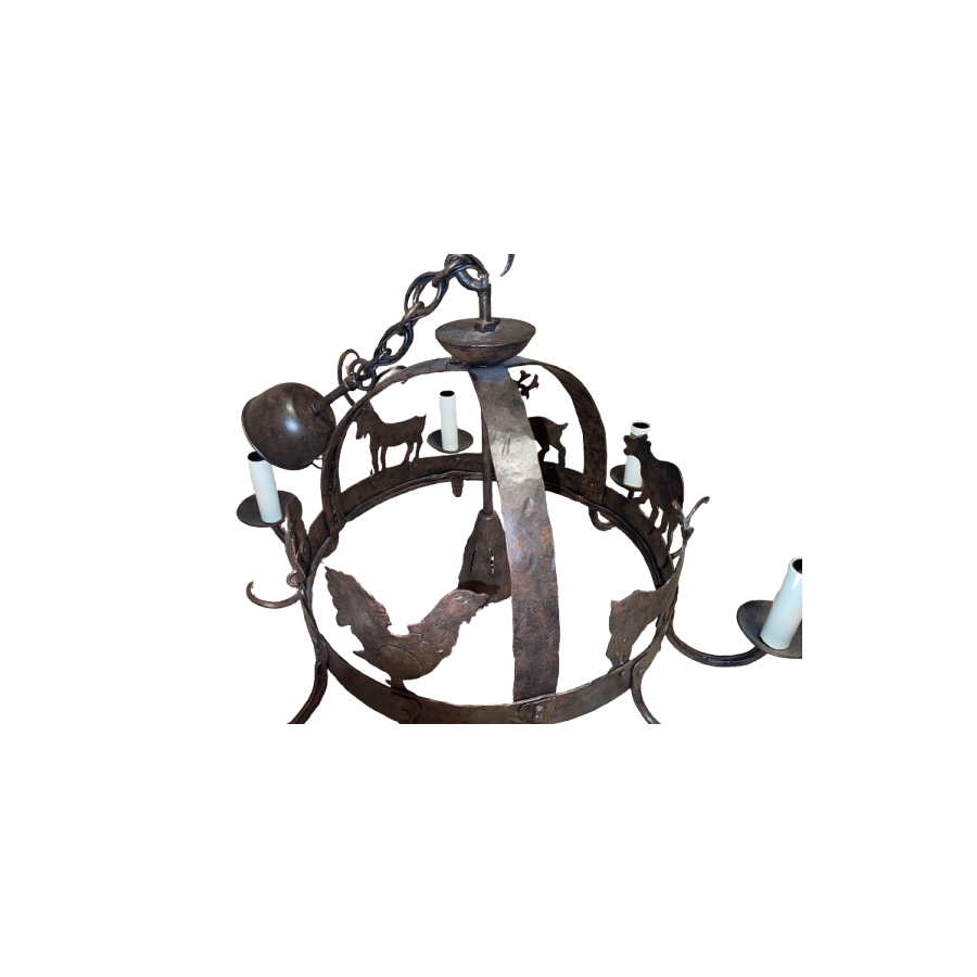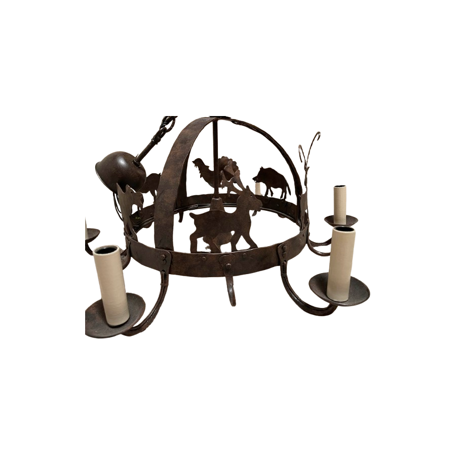 - Robers Leuchten / Ljuskrona med silhuetter av vilda djur / Rustic Wrought Iron
