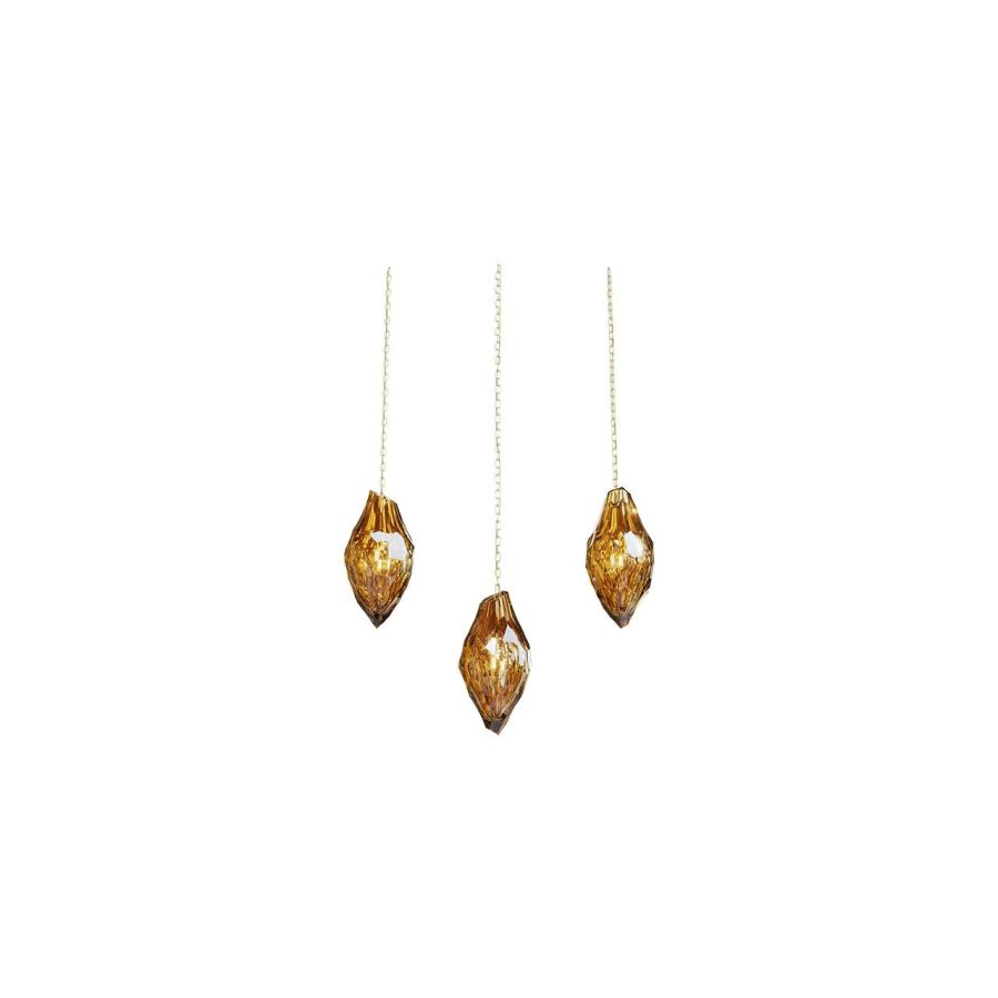 Capturing the beauty of a comet streaking through the night, the Flash collection features handblown crystal gems, each followed by a tail of glittering beads. Cascading downward, they create a bold installation that fills any interior with vibrant light and movement.