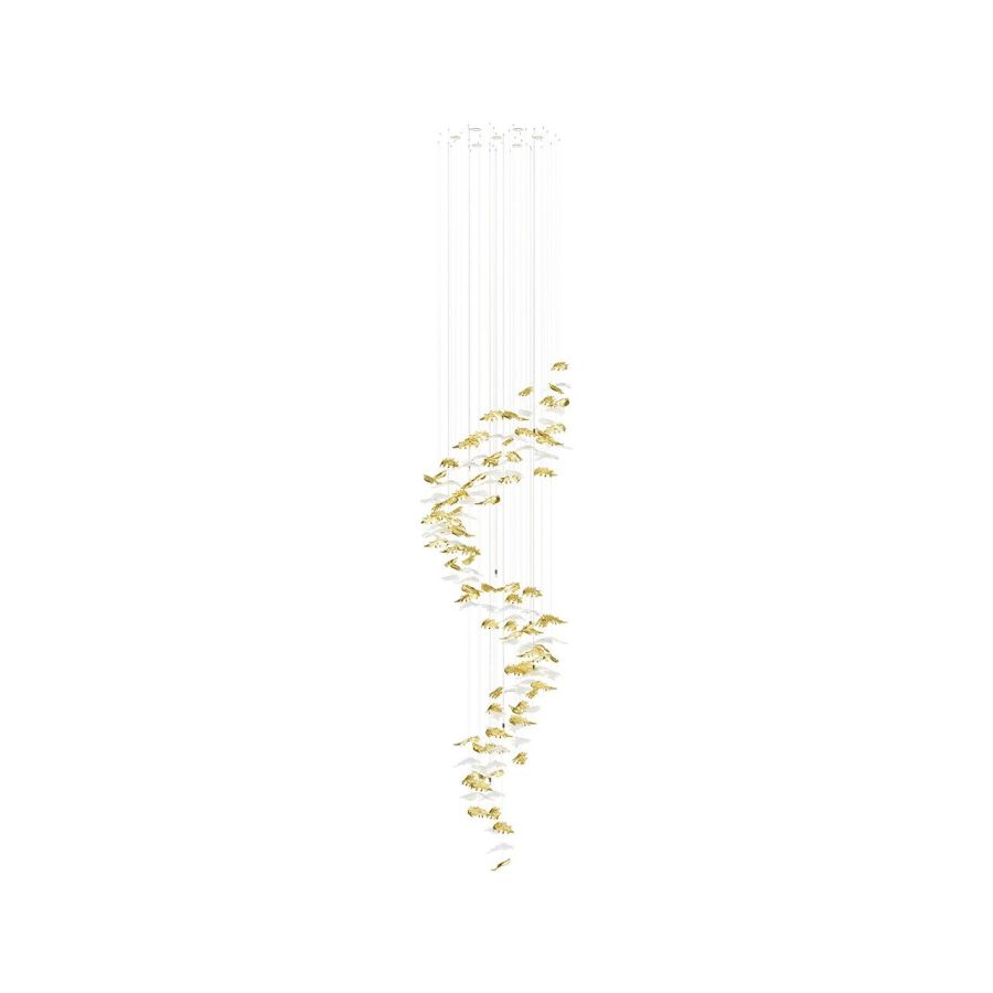 As the warm, gentle breezes of autumn lift and swirl leaves in a mesmerizing dance, the Flying Leaves collection captures this fleeting moment in time. Each piece is crafted from handblown crystal and meticulously shaped to reflect the beauty of autumn in nature. Suspended in a flowing arrangement, the collection embodies the delicate movement of leaves caught in the wind.