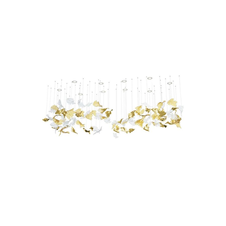 As the warm, gentle breezes of autumn lift and swirl leaves in a mesmerizing dance, the Flying Leaves collection captures this fleeting moment in time. Each piece is crafted from handblown crystal and meticulously shaped to reflect the beauty of autumn in nature. Suspended in a flowing arrangement, the collection embodies the delicate movement of leaves caught in the wind.