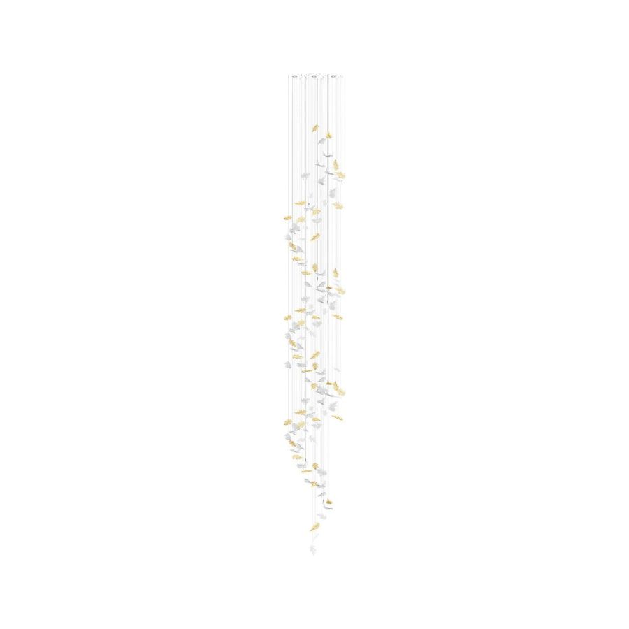 As the warm, gentle breezes of autumn lift and swirl leaves in a mesmerizing dance, the Flying Leaves collection captures this fleeting moment in time. Each piece is crafted from handblown crystal and meticulously shaped to reflect the beauty of autumn in nature. Suspended in a flowing arrangement, the collection embodies the delicate movement of leaves caught in the wind.