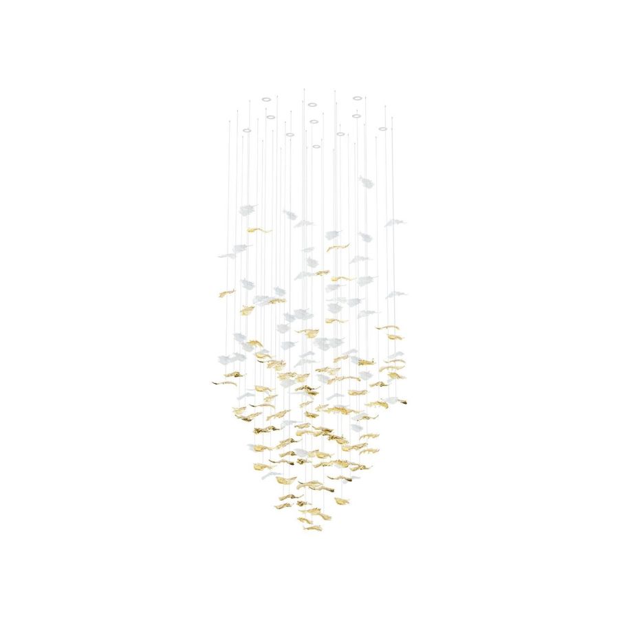 As the warm, gentle breezes of autumn lift and swirl leaves in a mesmerizing dance, the Flying Leaves collection captures this fleeting moment in time. Each piece is crafted from handblown crystal and meticulously shaped to reflect the beauty of autumn in nature. Suspended in a flowing arrangement, the collection embodies the delicate movement of leaves caught in the wind.
