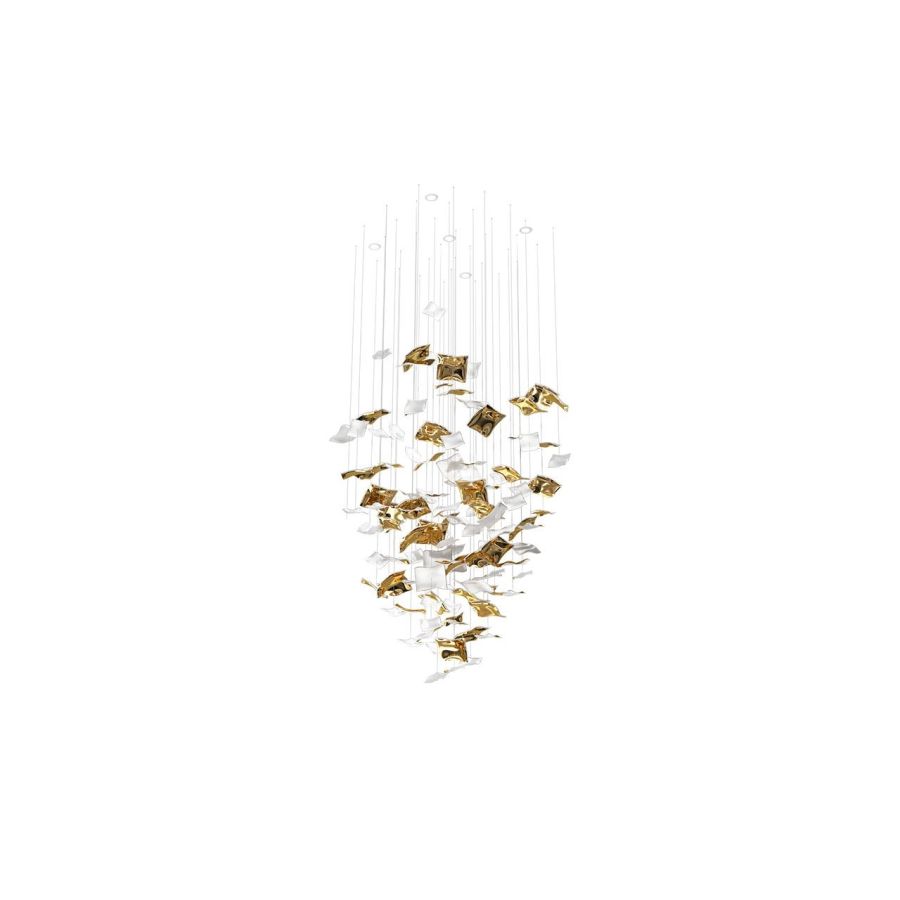 The Kerchiefs collection embodies elegance and luxury, featuring handblown components that appear to float weightlessly, as if caught in a gentle breeze. Each piece is finished with a contrasting metal accent, adding a touch of sophistication to its soft, flowing shape.