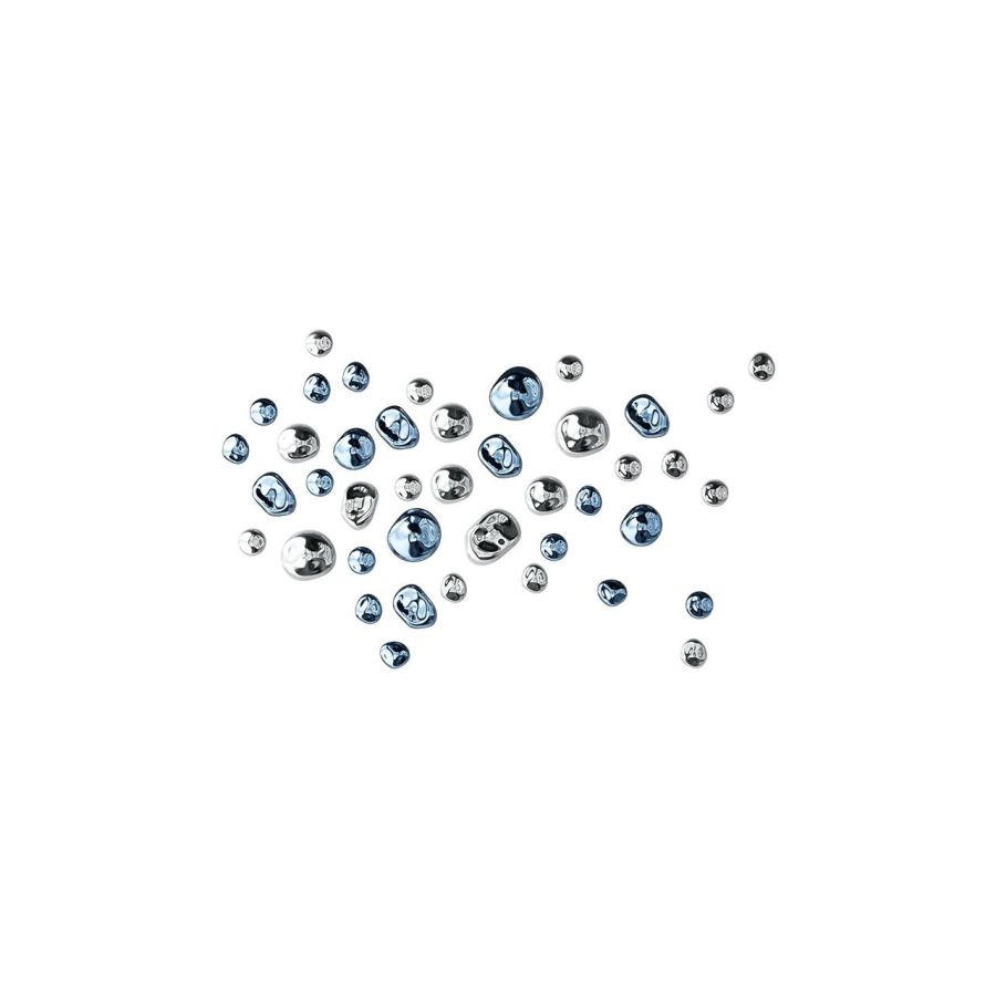 The Nuggets collection draws inspiration from raw, naturally formed lumps of gold and other precious metals found deep within the earth. Each crystal component is individually handblown and uniquely shaped, then finished with a reflective metal nanocoating. Every piece is one of a kind, allowing Nuggets to adorn any wall in captivating patterns.