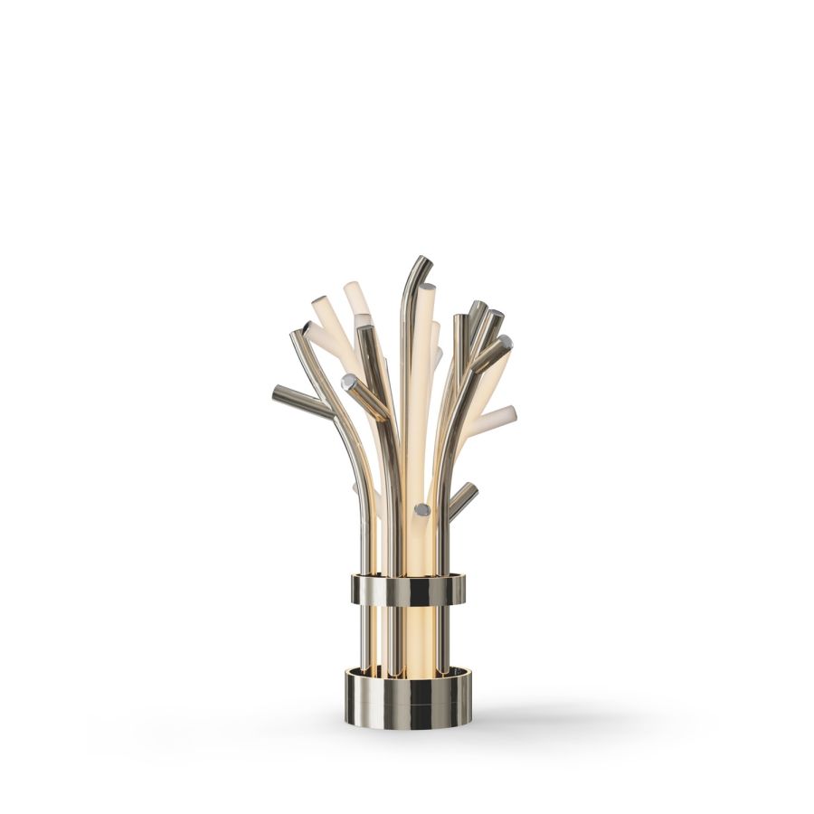 Branchy tells the story of the first lightning strike – the primal moment when fire met wood, igniting a light that endured even after night fell. This product line transforms raw, untamed energy into a refined interplay of crystal and metal, where nature and design converge. Sleek, elongated tubes stretch like branches reaching skyward, their polished surfaces catching and reflecting light. Soft, diffused glows emerge from sandblasted elements, evoking the gentle flicker of flames. A tribute to elemental forces, Branchy captures the delicate balance between destruction and creation, energy and elegance.