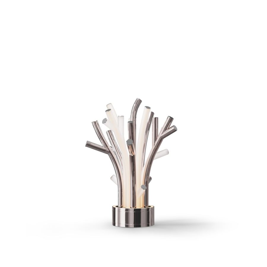 Branchy tells the story of the first lightning strike – the primal moment when fire met wood, igniting a light that endured even after night fell. This product line transforms raw, untamed energy into a refined interplay of crystal and metal, where nature and design converge. Sleek, elongated tubes stretch like branches reaching skyward, their polished surfaces catching and reflecting light. Soft, diffused glows emerge from sandblasted elements, evoking the gentle flicker of flames. A tribute to elemental forces, Branchy captures the delicate balance between destruction and creation, energy and elegance.