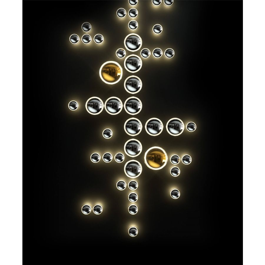 Lagoon explore the soft free-form lines and curves of a beautiful lagoon. Just like in nature, create a private inlet with blue, gold, and titan nano-coated glass components that shine in every direction. Let your imagination play out the spectacular scenery right on the wall.