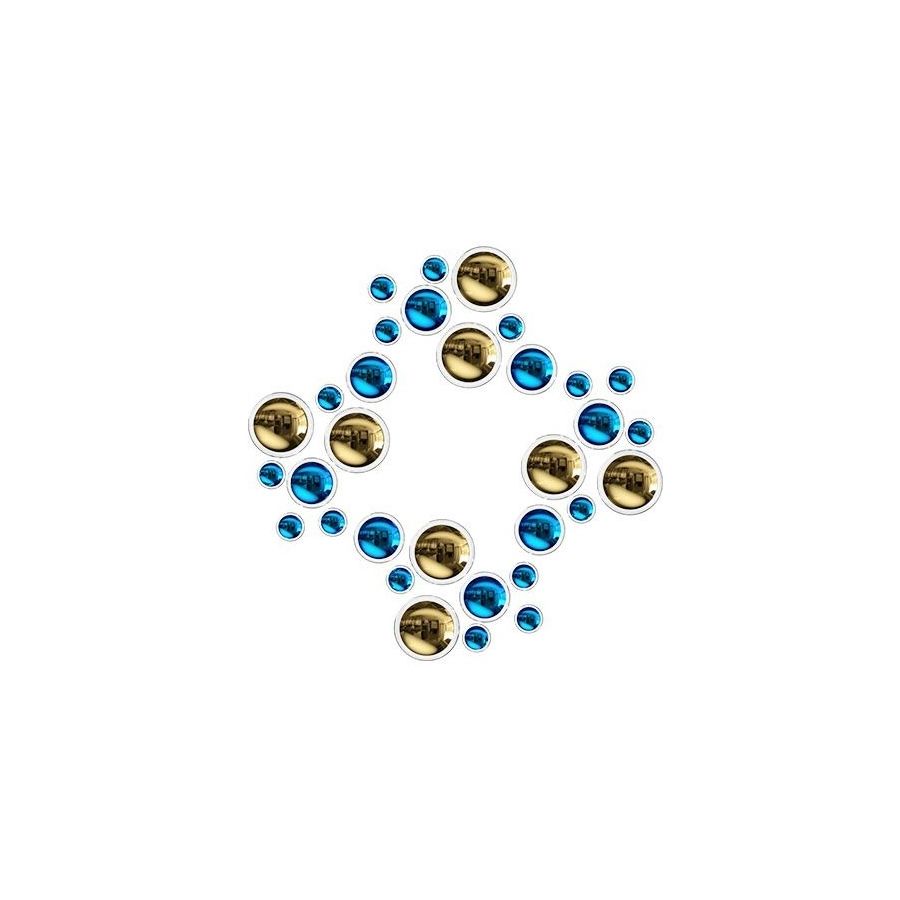 Lagoon explore the soft free-form lines and curves of a beautiful lagoon. Just like in nature, create a private inlet with blue, gold, and titan nano-coated glass components that shine in every direction. Let your imagination play out the spectacular scenery right on the wall.