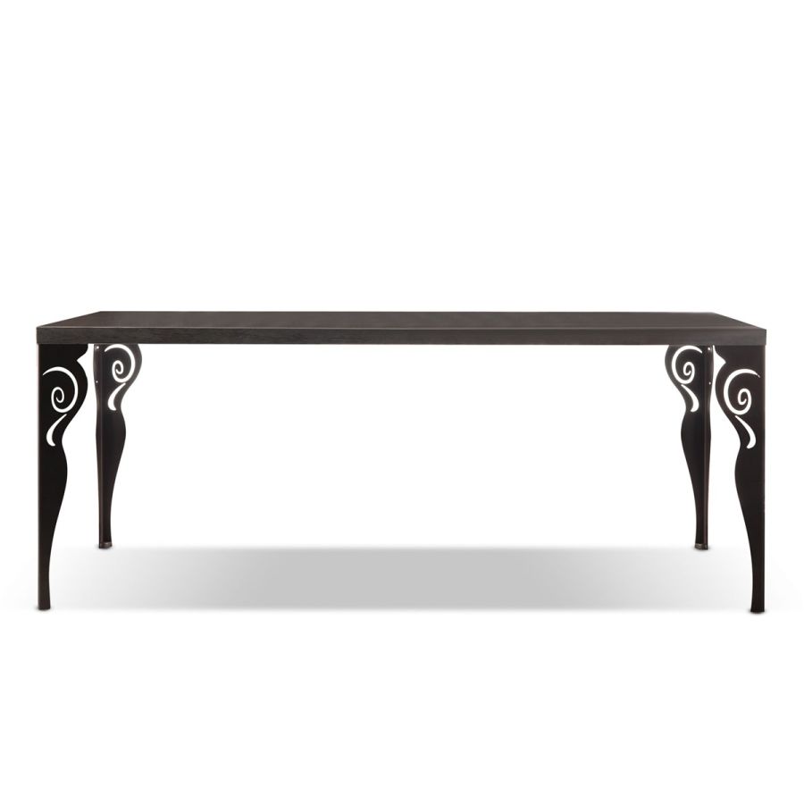 The laser cutted iron leg, hand polished and finished is perfect also for a technical use, like in case of a writingdesk: a stylish appeal and in the meantime a well balanced creation, offering lightness and airiness. A marvellous choice of finishings to be mixed with the top proposlas permits to choose the perfect solution for everyone’s necessities