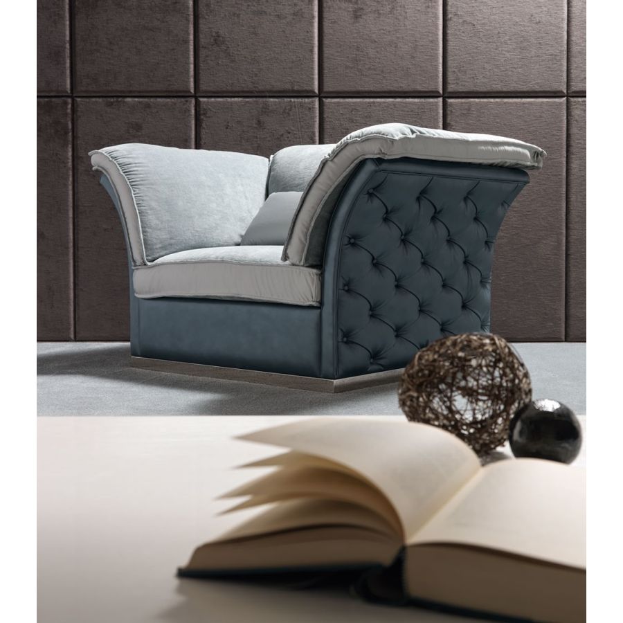 Tiago is a retro sofa collection, which elegance is enhanced by the sloping shape of the structure fitted on a strong metal plinth. The capitonné handcrafted upholstery is realized with an ancient thecnique used from the best master craftsmen; the cushions are soft, steady, comfortable: the ultimate to offer an unfogettable relax.