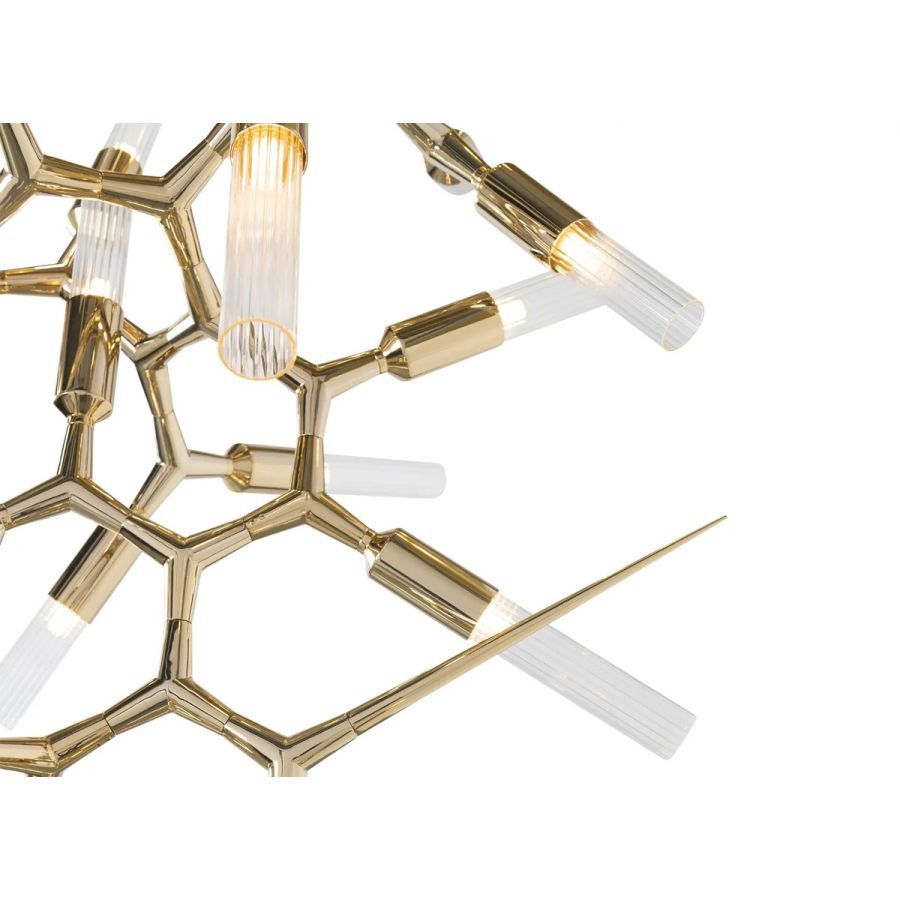 Inspired by the showstopping Shard London Bridge, the Shard Chandelier is a unique piece whose powerful design is akin to a work of art. Made from gold-plated brass and crystal glass, allow this modern chandelier to take the spotlight in your projects, and you will not be disappointed.