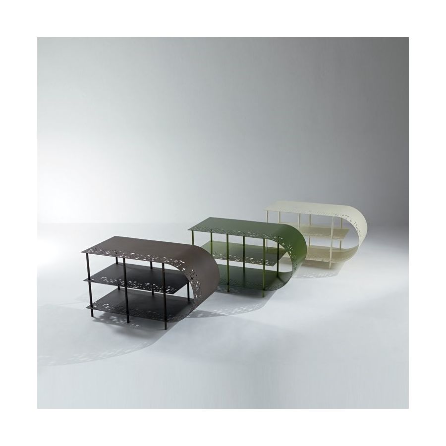 En ny kollektion uppstår ur konsten att skära ut metallplåt, som hålls i form av en lätt tubulär konstruktion. Dessa ikoniska inredningsaccessoarer har en stark karaktär som kan passa in i alla typer av miljöer, från minimalistiska till klassiska. Tack vare kombinationen av två färger utformade för att dialoga med varandra – rött med orange och grönt med lime – tillför detta soffbord en känsla av munterhet och välbefinnande i rummet. Producerat i många versioner, både målade och omålade, är det det nya måste-ha inom möbler.