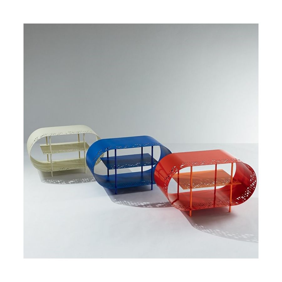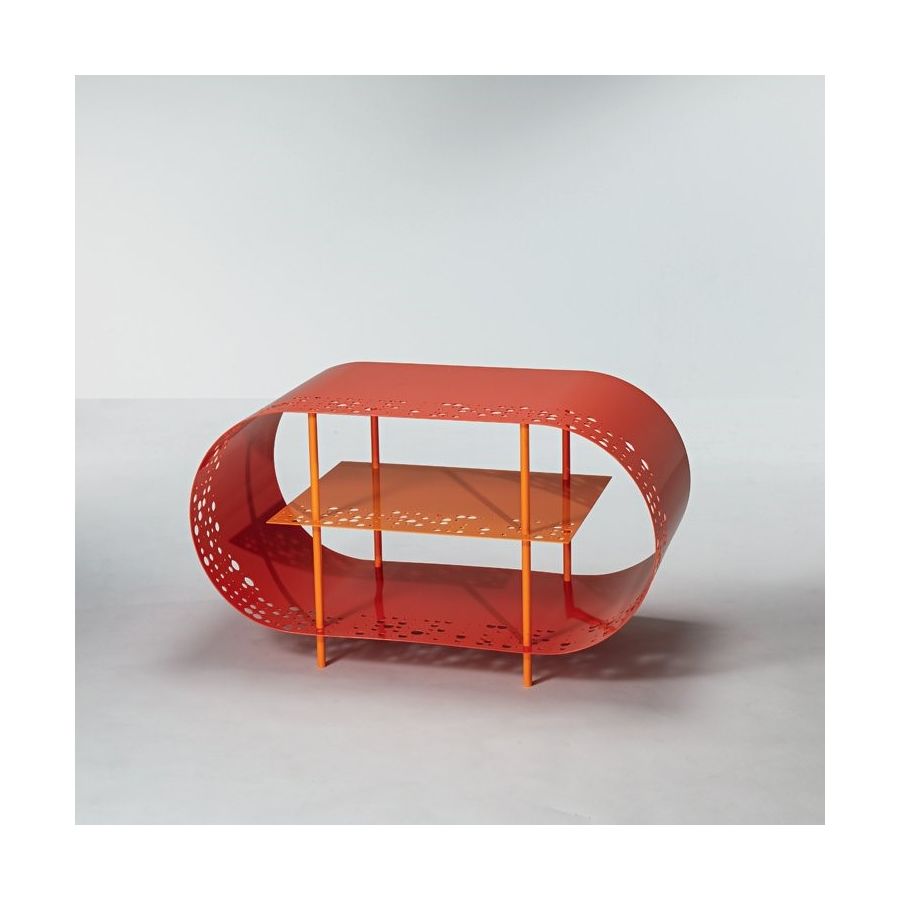 En ny kollektion uppstår ur konsten att skära ut metallplåt, hållna i form av en lätt tubulär stomme. Dessa ikoniska inredningsaccessoarer har en stark karaktär som kan passa in i alla typer av miljöer, från minimalistiska till klassiska. Tack vare kombinationen av två färger utformade för att föra dialog med varandra – röd med orange och grön med lime – tillför detta soffbord en känsla av glädje och välbefinnande till rummet. Producerat i många versioner, både målade och omålade, är det det nya måste-ha inom möbelvärlden.