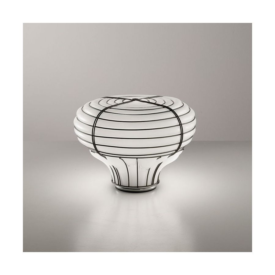 Den rigorösa designen, präglad av burens täta linjestruktur, gör att du kan skapa produkter som alltid är unika men samtidigt väl definierade i formerna, och tvingar glaset till de påtvingade formerna. En modern och bestämd lampa idealisk för att skapa rätt atmosfär i vilken miljö som helst.