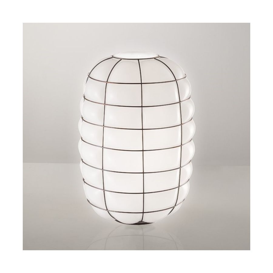 Det entydiga metallgallret formar glaset med unik precision. Lanterna är en modern tolkning av de ikoniska japanska lamporna, skapad tack vare den ädla venetianska glasblåsarkonsten.