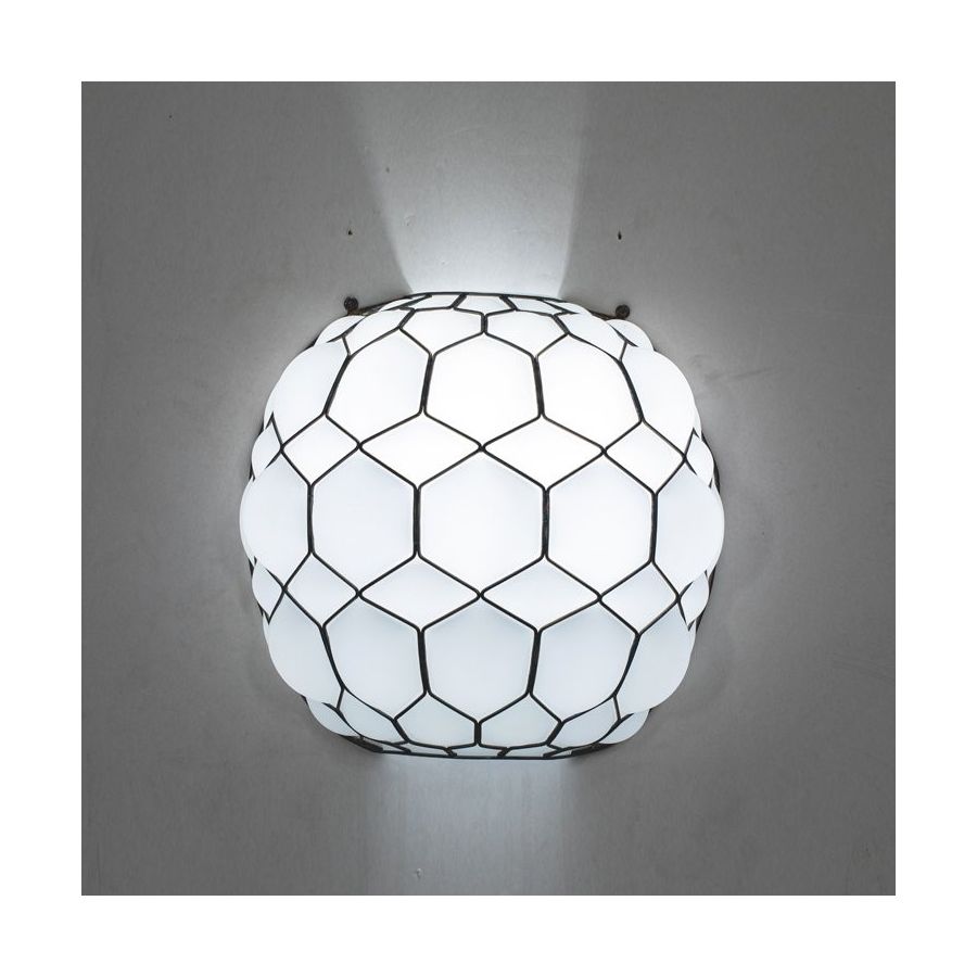 Giorgio Biscaro framkallar avlägsna och exotiska atmosfärer. Inspirerad av formerna hos en sköldpaddas karapax verkar Galapagos komma till liv tack vare rörelsen hos det munblåsta glaset inneslutet i gallerverket av precisa och symmetriska metallinjer som ger formen åt föremålet. Diffust ljus för att värma vilket rum som helst.