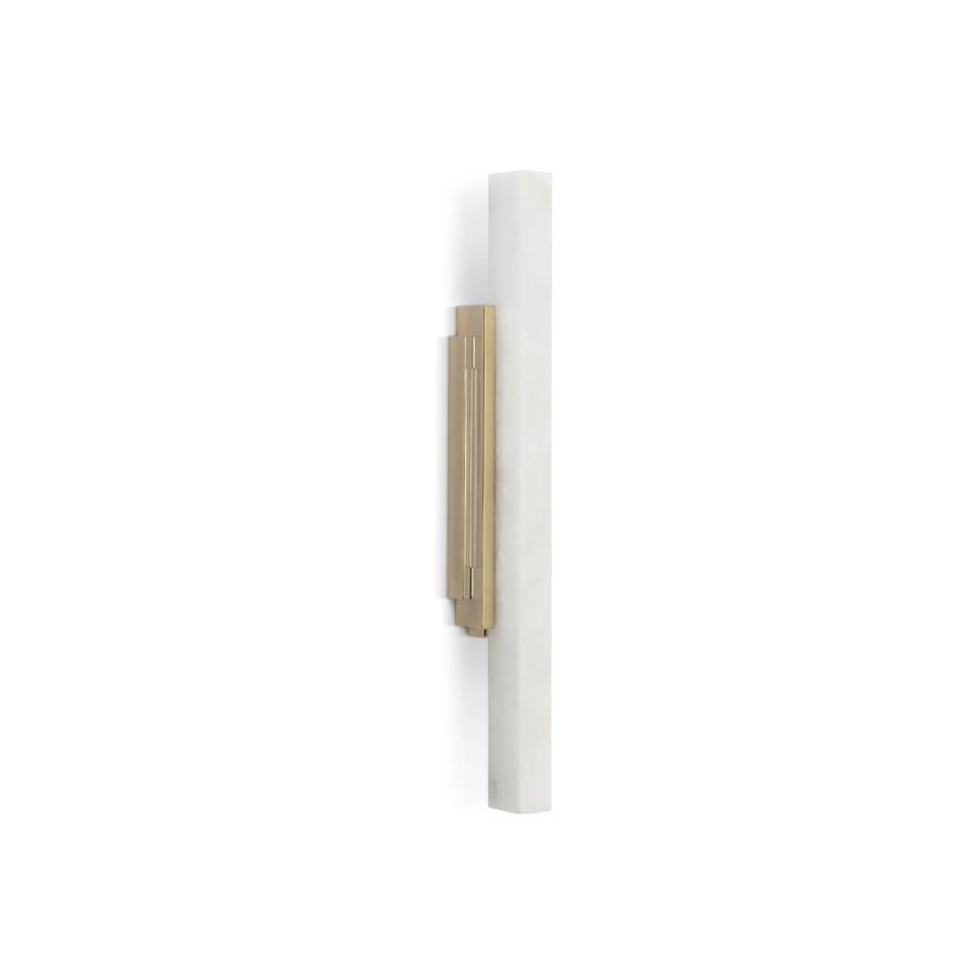 Drawing inspiration from the dynamic skylines of the world’s great metropolises, the Skyline Wall Lamp echoes the silhouette of illuminated skyscrapers after dark. Crafted from gold-plated brass and alabaster, its linear design balances strength and delicacy. Minimalist in form yet rich in presence, it seamlessly integrates into modern lighting schemes, offering a subtle architectural statement.