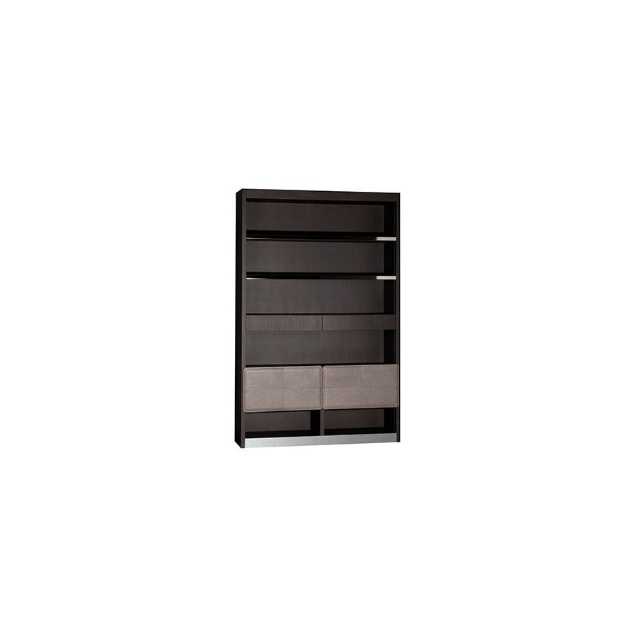 Wenge bookcase with 2 wooden card index cabinets, 2 shelves, 2 drawers and steel details with polished black nickel finish.