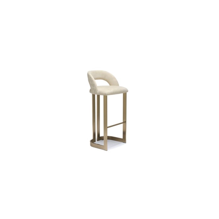 Fix padded stool with differentiated polyurethane foam densities, brushed bronzed steel legs.