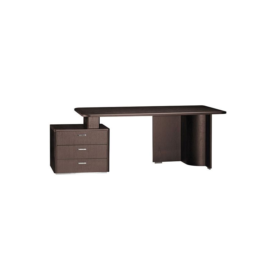Gramercy finds its place in luxury offices that contemplate both classic and modern style, and perfectly matches with your style. You can choose a different wood finishing and modify the metal reflection. In addition, the desk top can be upholstered with your favourite leather among the countless types available.