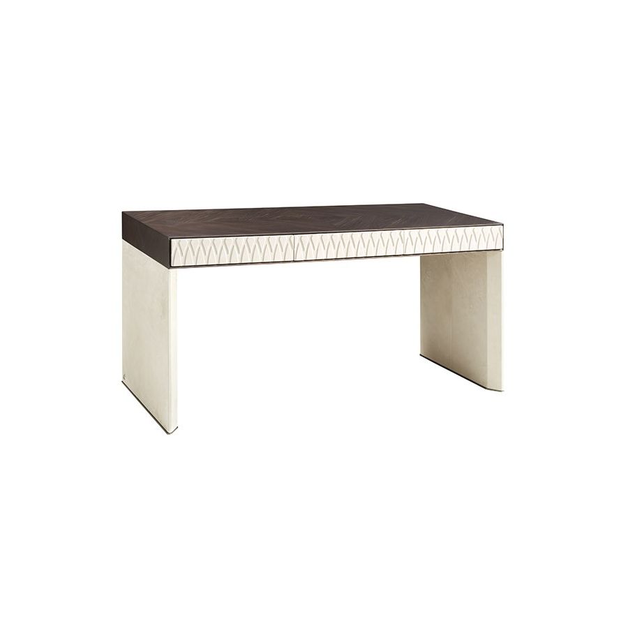 Leather, wood and metal: Jamal is the perfect elegant contrast of materials,which enhance each other. The wood shows its flawless shades on the top and in some parts of the sides, the soft and smooth leather upholsters the drawers and the legs, while the metal enlightens the base of the legs. In addition, thanks to the Jersey decoration on the front side of the drawers, Jamal enhances any luxury furnishing.