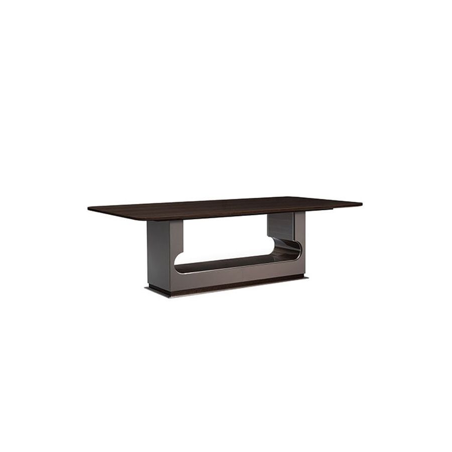 Lock is a dining table that enhances luxury halls. The naturalness of the wood is enriched by the lacquering effect, both in the shelf and the interior of the base. These elements reflect the surrounding environment thus redoubling the decorative power of the room. It is perfect to furnish classic dining rooms with some modern touches: its brilliance and elegance perfectly match with both styles.
