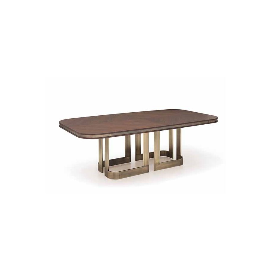 Matt/matt tobacco rosewood dining table, brushed bronzed steel legs, brushed bronzed steel details.