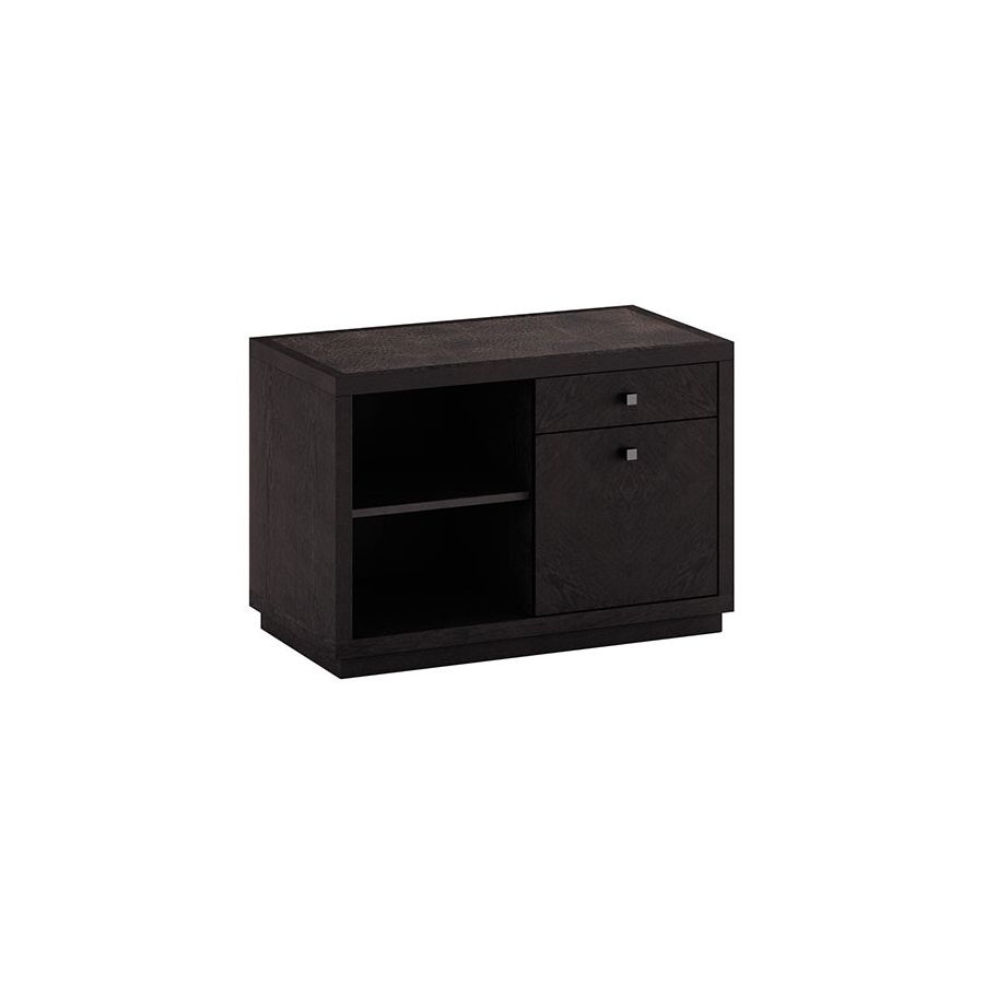 Wooden storage unit with 1 drawer, 1 filing cabinet, open compartment and steel details.