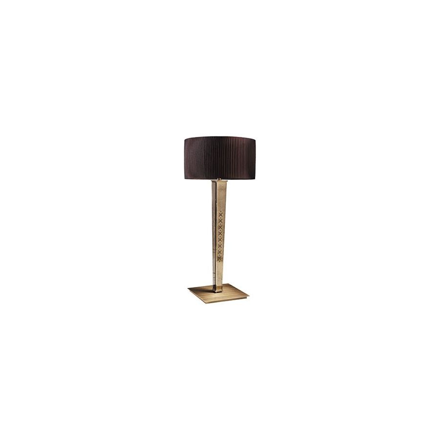 Floor lamp in bronzed antique engraved glass with brushed steel details and lampshade.