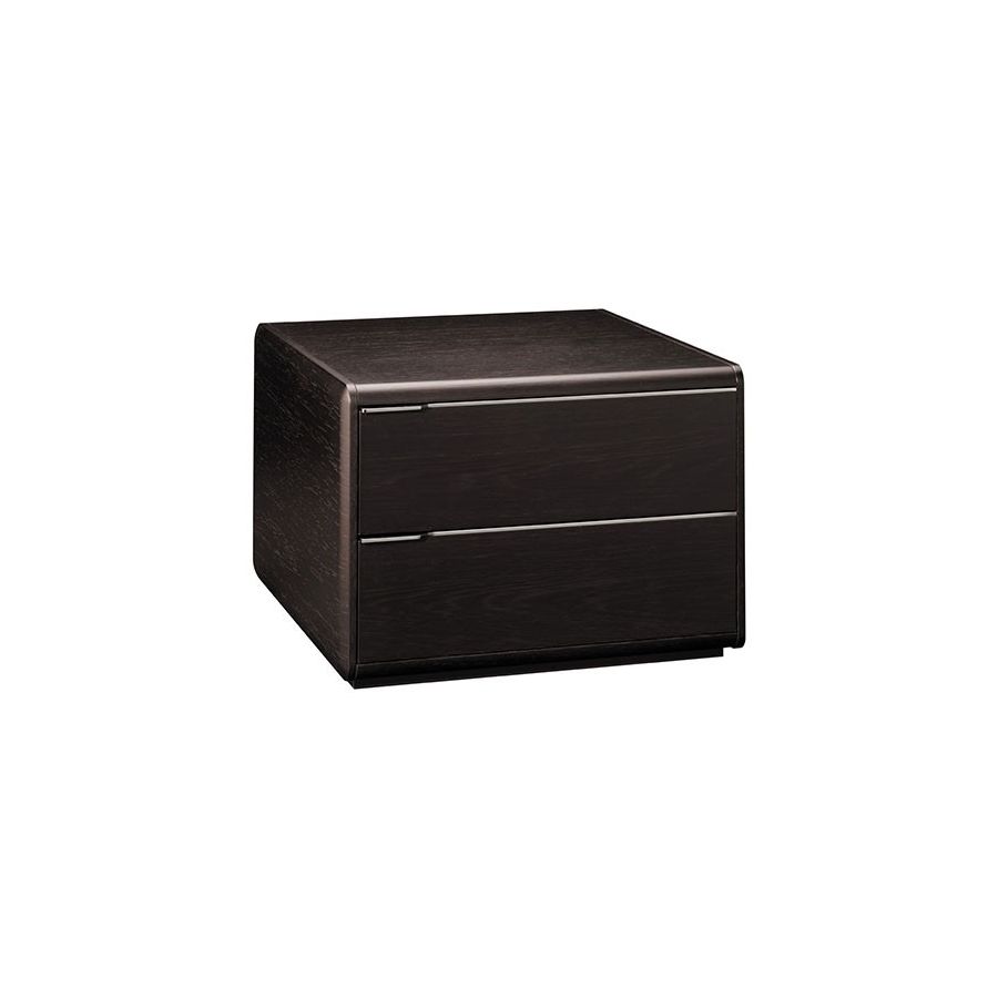 Wenge nightstand with 2 drawers and steel details with polished black finish.