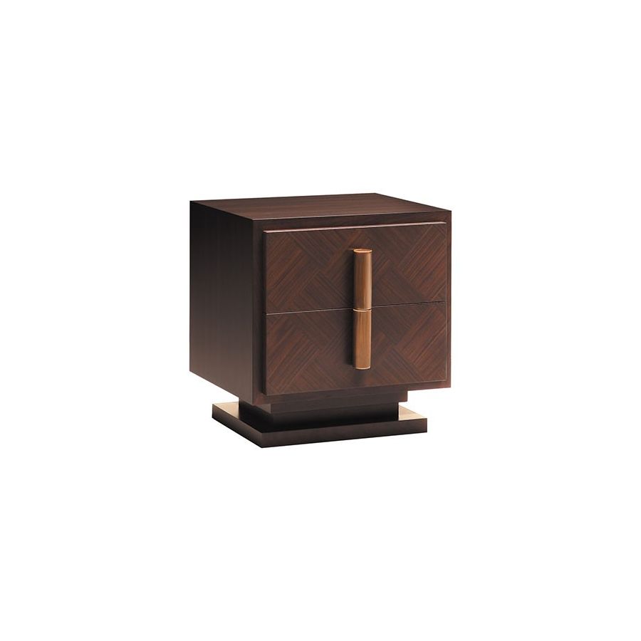 Wengè nightstand with 2 drawers and brushed burnished steel details.