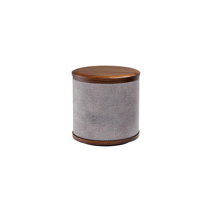 Fabric or leather round side table, wooden top and base