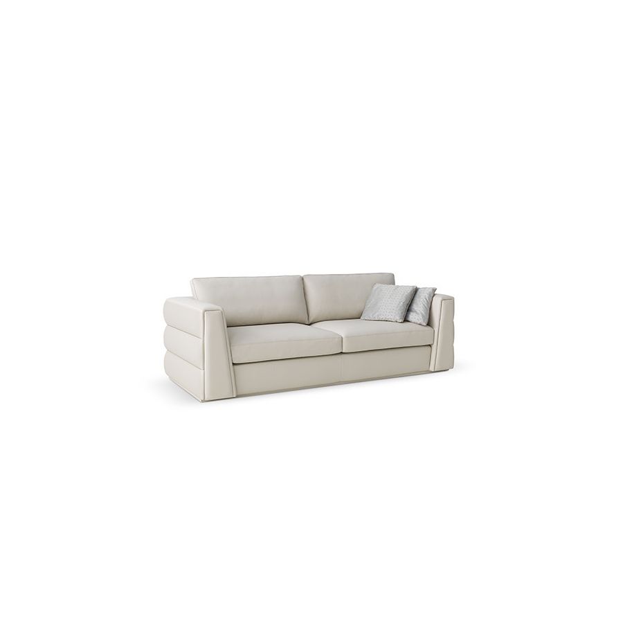 A single glance is enough to perceive the absolute softness of Cloe. The geometric sign given by the lines on the backrest and armrests is strong. The soft padding is enclosed between horizontal and diagonal lines, created by the stitching done by hand by Smania craftsmen. Thus the sophisticated forms of Cloe are followed with the gaze, which in an instant invites us to relax among its cushions. The softness becomes palpable: you immediately feel the incomparable comfort of this sofa for luxury livings. The differentiated density padding and the feather cushions support the body giving an enviable feeling of comfort.