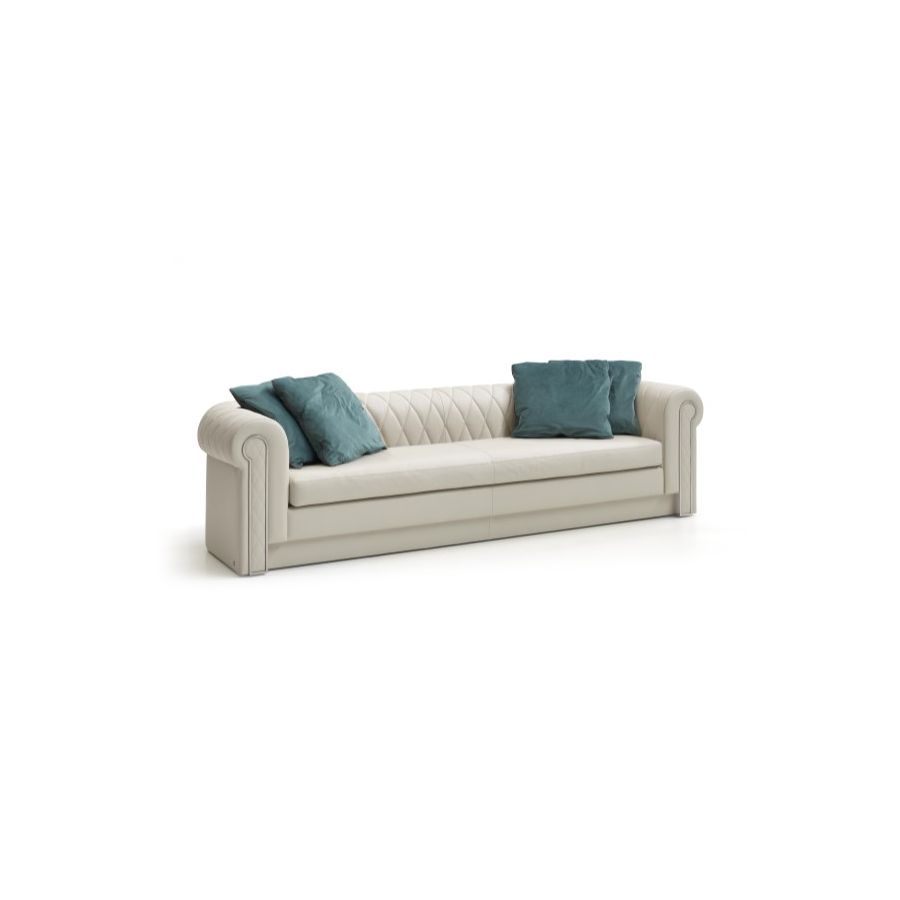 In contemporary living rooms it gives a touch of elegant harmony to the furnishings thanks to its ability to dress in different styles. In fact, Derby can align perfectly with the look of your environment: just choose a covering from different types of leather and fabrics, or change the metal that decorates the front. This way you will have your special sofa.