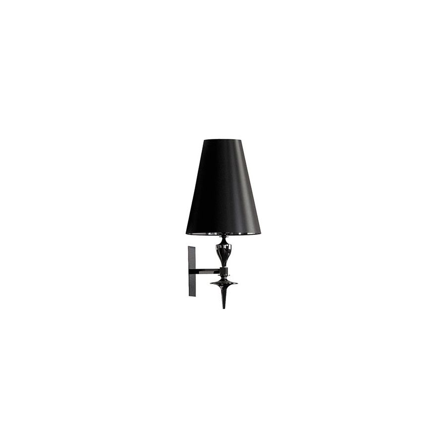 Applique with steel structure with polished black nickel finish and lampshade.