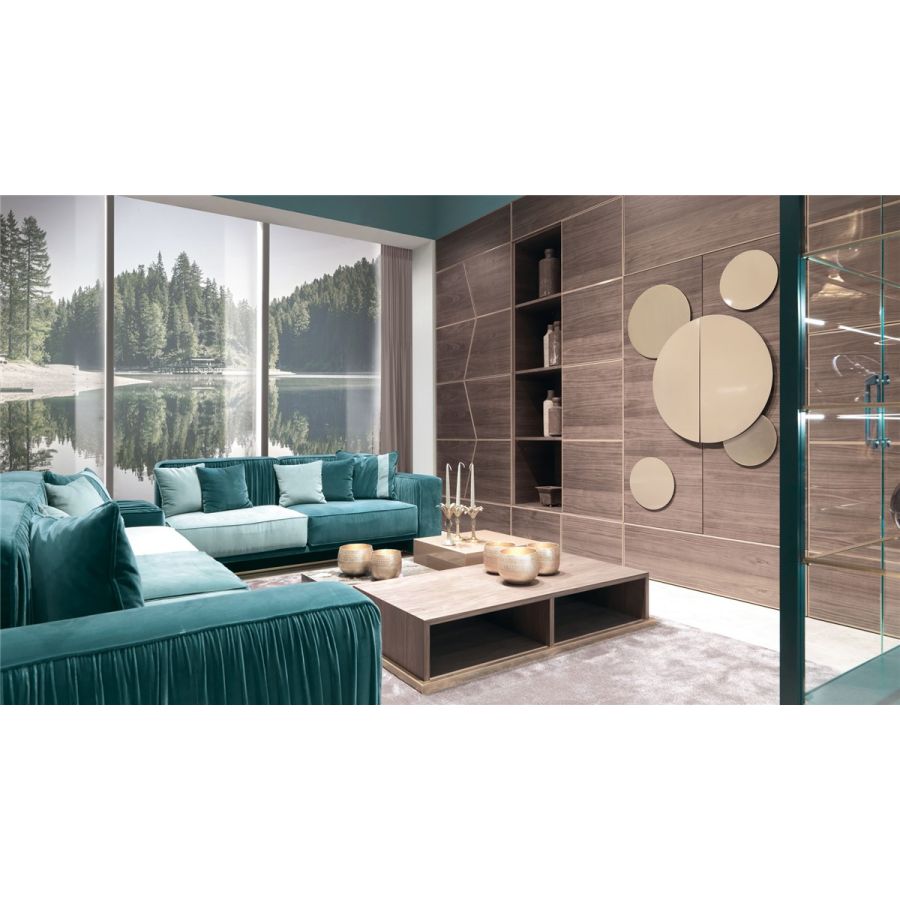 The supporting structure is made of wood and covered with manual care in many different fabrics/leathers. The cushions in differentiated-density polyurethane foam are covered with the wide range of selected fabrics.