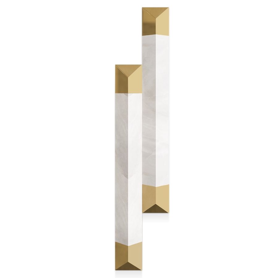 Inspired by ancient Rome, the Spear II Wall Lamp is a timeless design that combines strength and elegance. The contrast between the gold-plated brass and the alabaster creates a striking visual effect that elevates this wall light design, making it a true work of art. Ideal as accent lighting or to complete any interior decor.