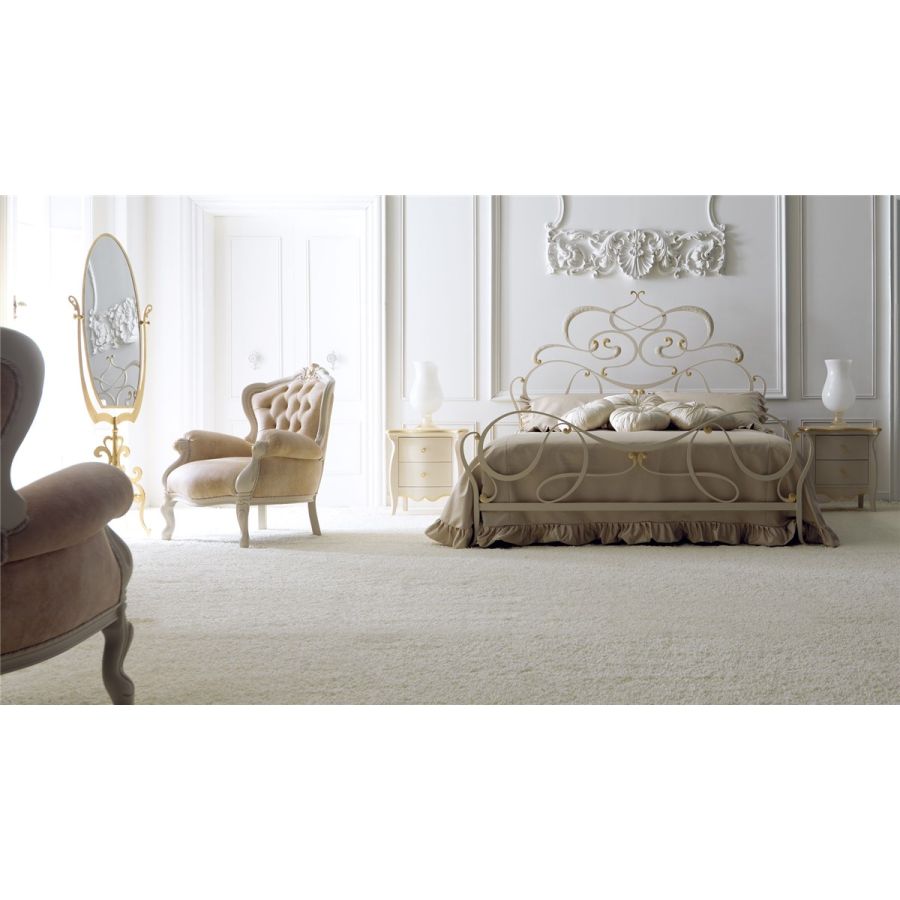The Ester tilting mirror, with free-standing support and revolving mirror, is made of forged solid iron and available in a wide range of decorations. Its romantic style and the classic shape make of this mirror a lavish passepartout for the classic bedroom