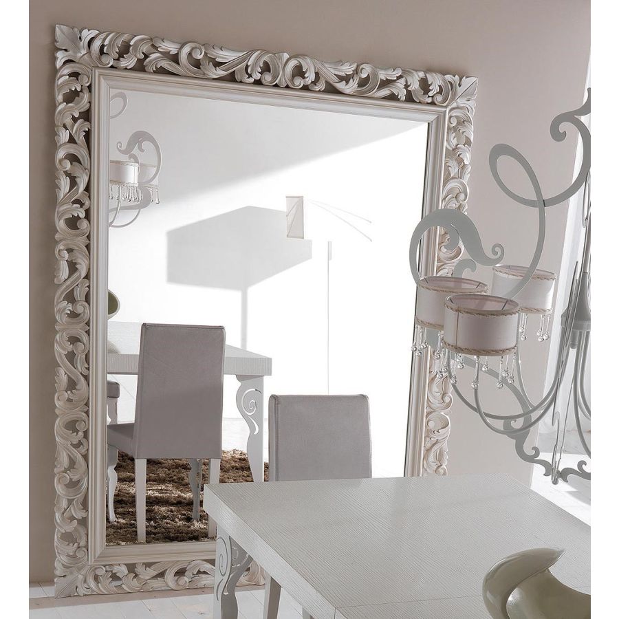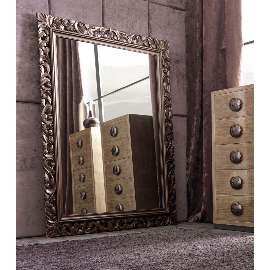 A precious mirror with a solid wooden frame masterfully hand-carved and decorated. The preciousness of Gaston mirror available from catalogue in 4 different sizes is fully expressed in the bigger dimensions. Available in a wide choice of finishings, it is suitable for many different interior, as a unique presence in every room.